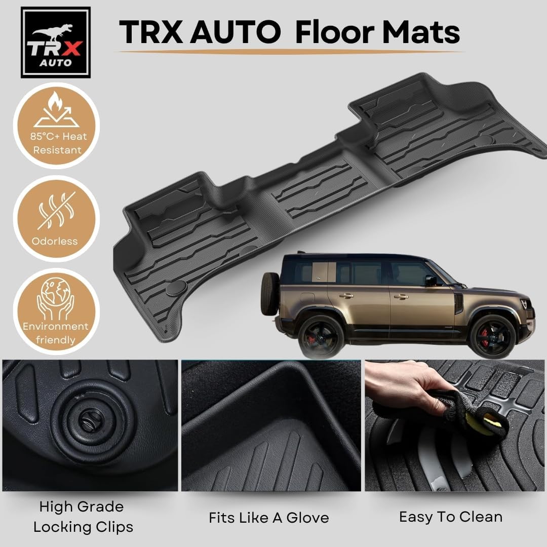 TRX AUTO 3D Car Floor Mats For Land Rover Defender 110 2019 To 2024 Set Of 4 With Trunk Mat | All Weather Protection | Black TPE Car Floor Mats | Accessories For Land Rover Defender 110 |