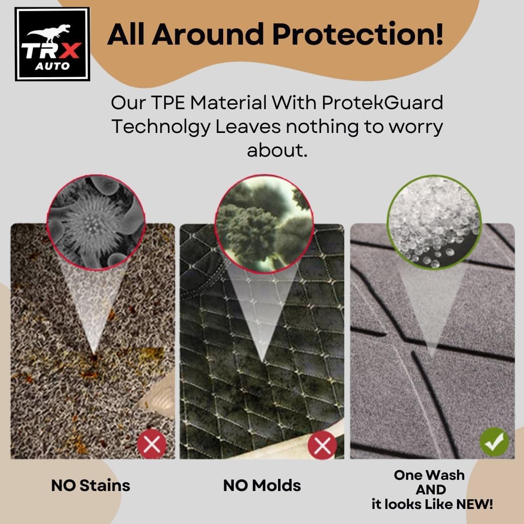 - Elevate your vehicle’s interior with TRX AUTO Floor Mats, designed to deliver unmatched protection and style. Crafted from high-quality TPE (Thermoplastic Elastomer) material, these mats are engineered to withstand the Worst conditions, providing a good solution for your car’s flooring needs.