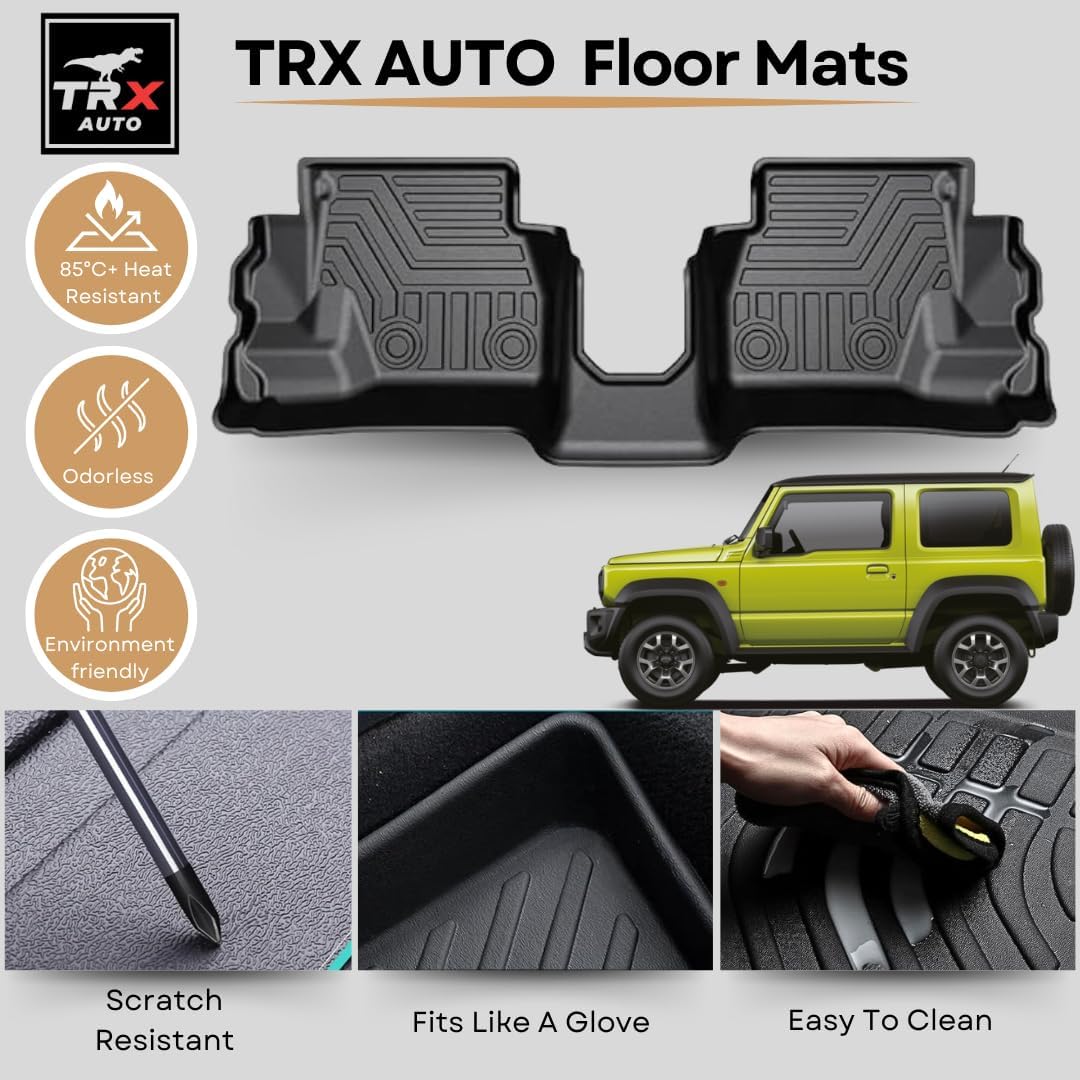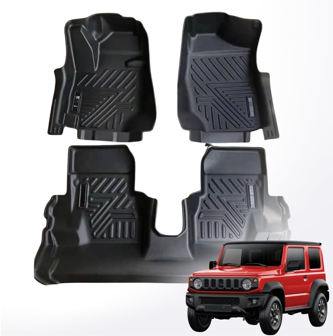 TRX AUTO 3D Car Floor Mats For Suzuki Jimny 2 Door 2018 To 2024 Set Of 3 | With All Weather Protection | Black TPE Car Floor Mats | Compatible with Suzuki jimny 2025 Accessories |