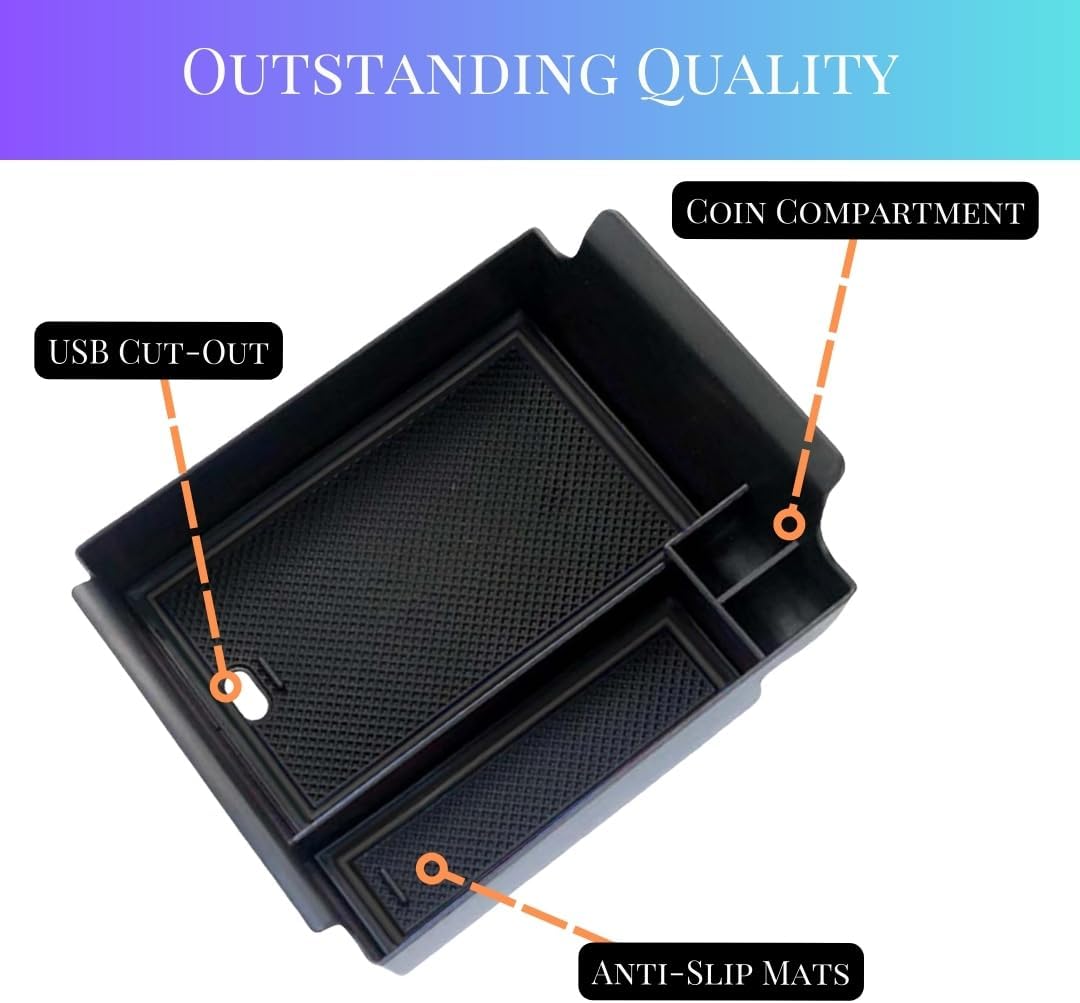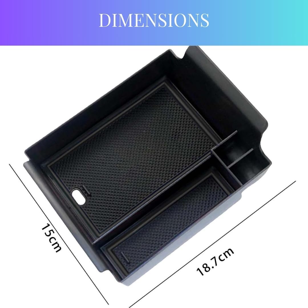 - 🔧 – 【Function】If you often cannot find the small items in the car, you must need this organizer. Provide space to put your key, cell phone, charging adapters, credit card, ID Badges, and coins, etc. Provides you with quick access to commonly used items with more storage space than OEM tray.