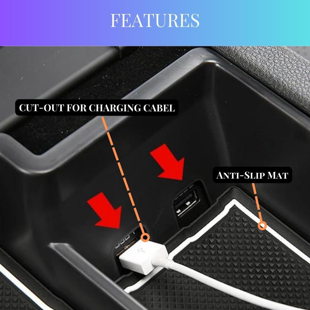 - 🔧 – 【Function】If you often cannot find the small items in the car, you must need this organizer. Provide space to put your key, cell phone, charging adapters, credit card, ID Badges, and coins, etc. Provides you with quick access to commonly used items with more storage space than OEM tray.