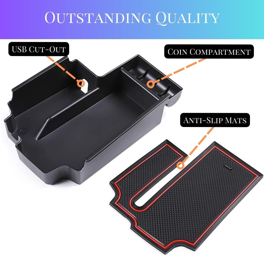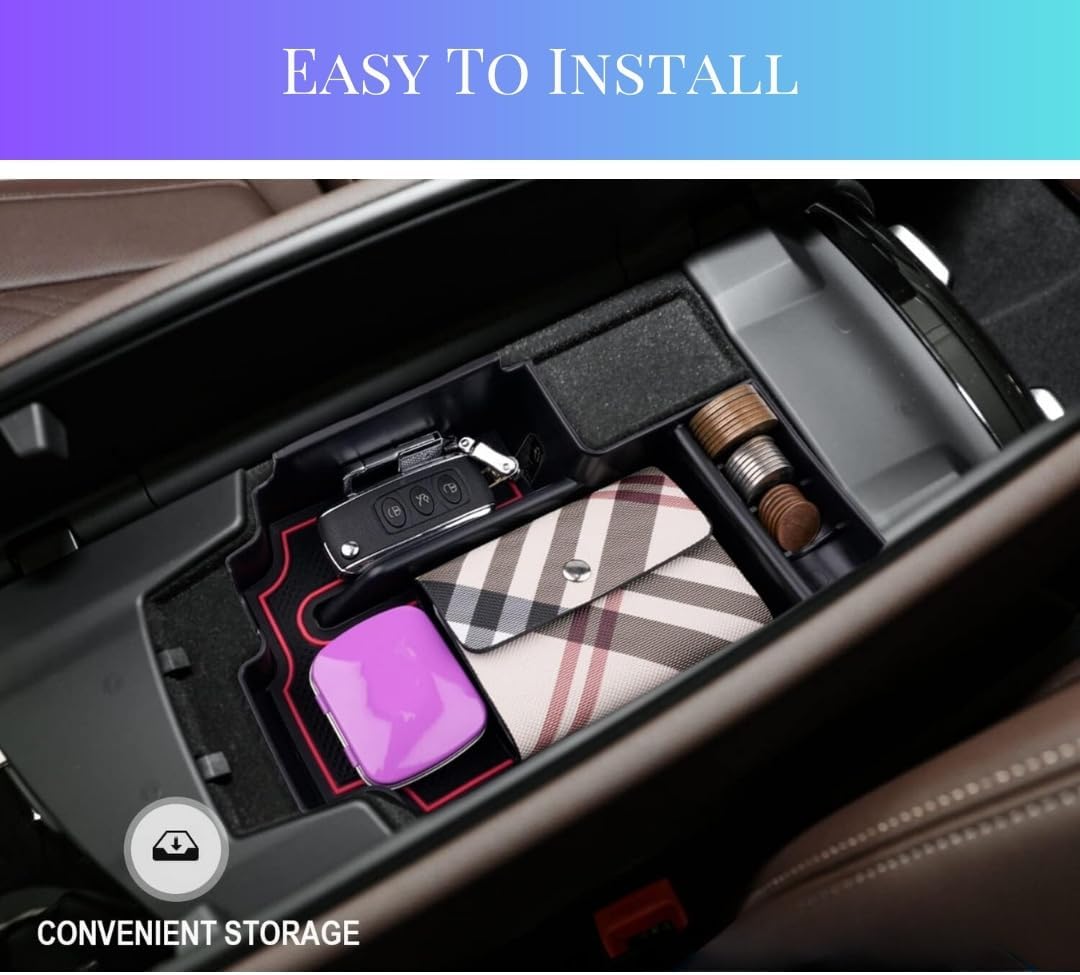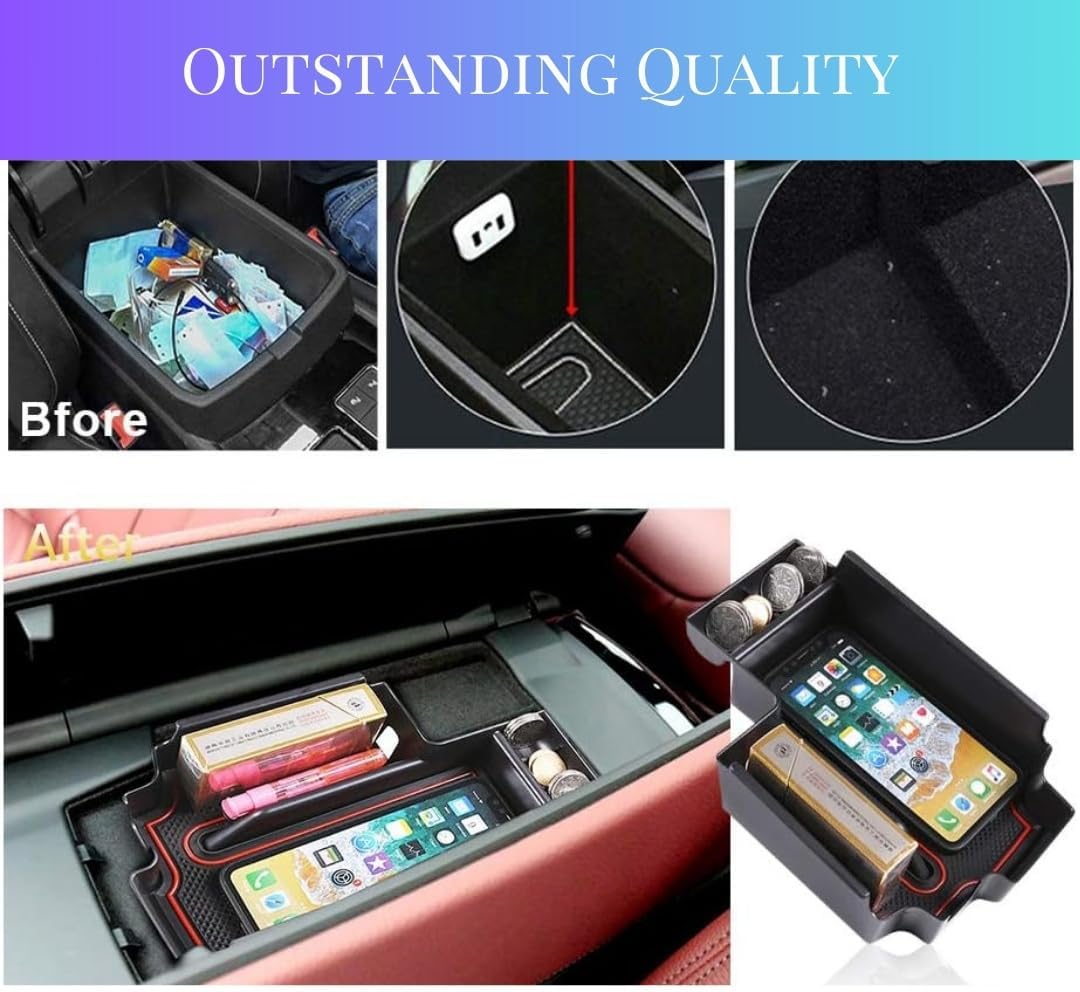 - 🔧 – 【Function】If you often cannot find the small items in the car, you must need this organizer. Provide space to put your key, cell phone, charging adapters, credit card, ID Badges, and coins, etc. Provides you with quick access to commonly used items with more storage space than OEM tray.