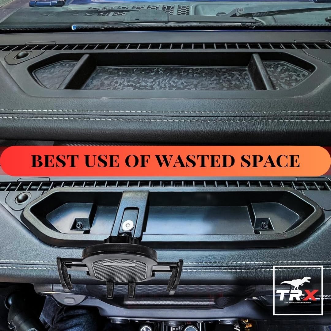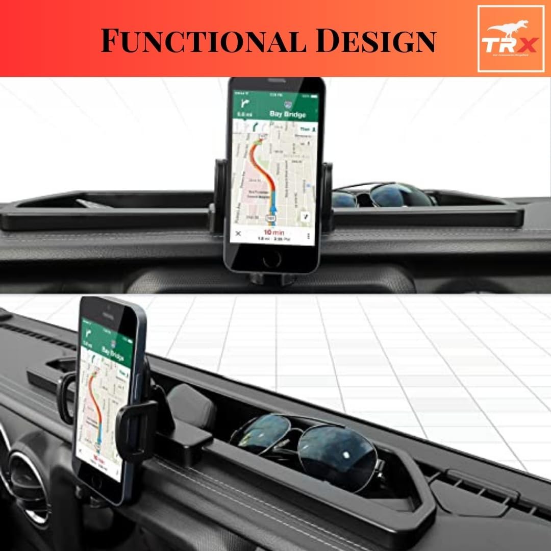 TRX Auto Dashboard Phone Holder With Storage Tray For Jeep Wrangler & Gladiator JLU, JL & JT 2018 To 2024 | Jeep Wrangler Accessories