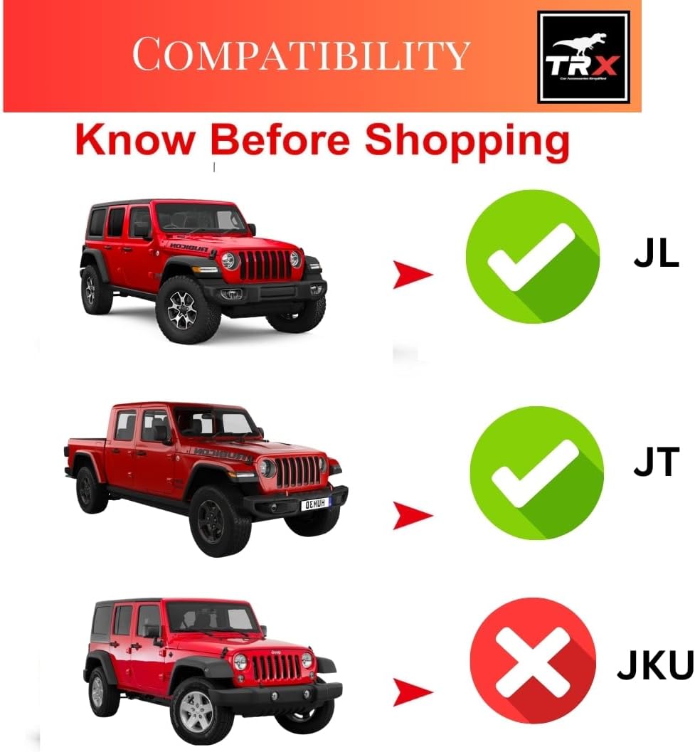 - 🚗 Compatibility: Compatible with Jeep Wrangler JL (2018-2024) and Jeep Gladiator JT (2020-2024), ensuring a perfect fit for both models.