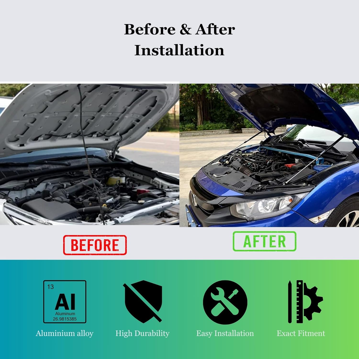 - 🚙 – 【Compatible For Models】Front hood shock absorber support rod replacement kit is suitable for Honda Civic 2016 2017 2018 2019