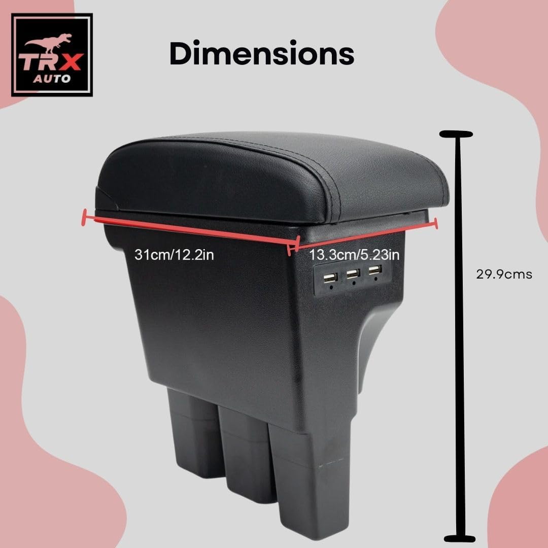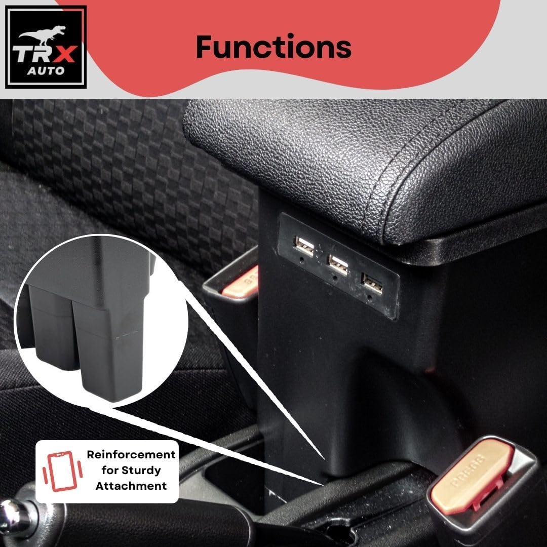TRX AUTO Paded Armrest Storage Box With Double Layer Organizer For Suzuki Jimny 2024 2023 2022 2021 2020 2019 | For JB64 JB74 Suzuki Jimny Accessories | 3 USB Ports With Interior Console Light