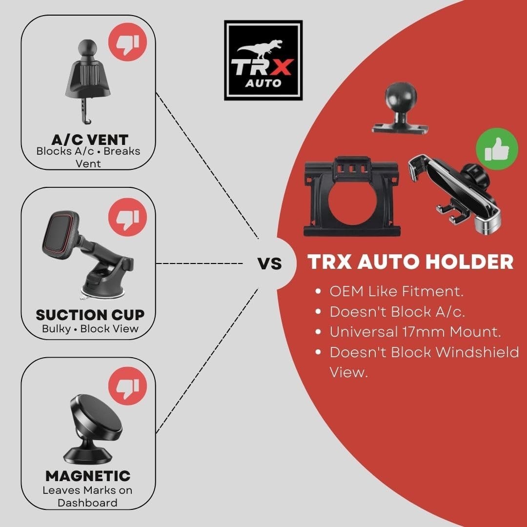 - 🛠 Universal Compatibility: Equipped with a 17mm ball joint, this mount allows attachment of any mobile phone holder. Enjoy the flexibility to use your preferred phone holder, ensuring you can always have the best fit for your device. Although we sell it with a gravity phone holder, you can use any 17mm ball joint holder available on the market, allowing for easy swapping if you upgrade your phone or need different functionalities.