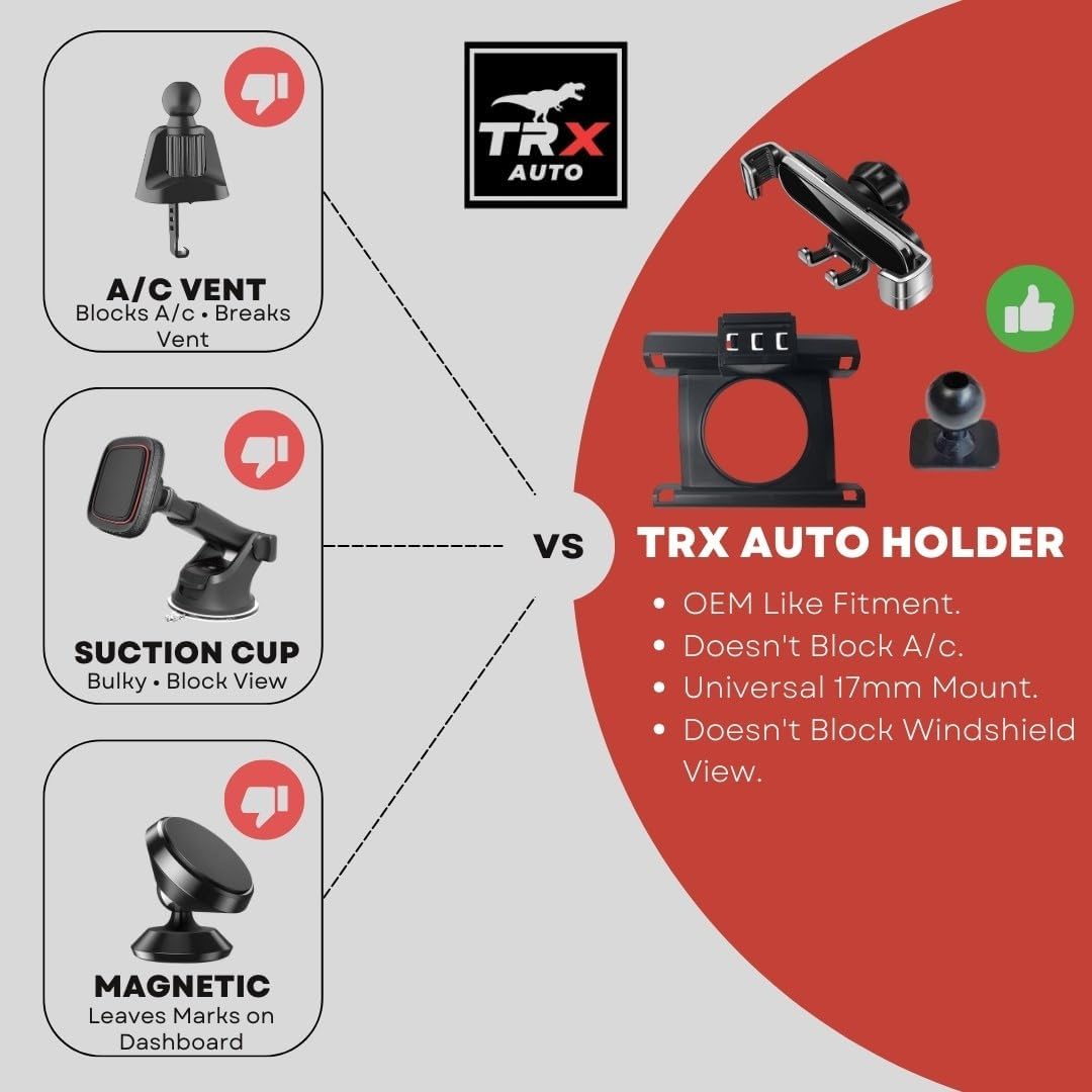 - 🛠 Universal Compatibility: Equipped with a 17mm ball joint, this mount allows attachment of any mobile phone holder. Enjoy the flexibility to use your preferred phone holder, ensuring you can always have the best fit for your device. Although we sell it with a gravity phone holder, you can use any 17mm ball joint holder available on the market, allowing for easy swapping if you upgrade your phone or need different functionalities.