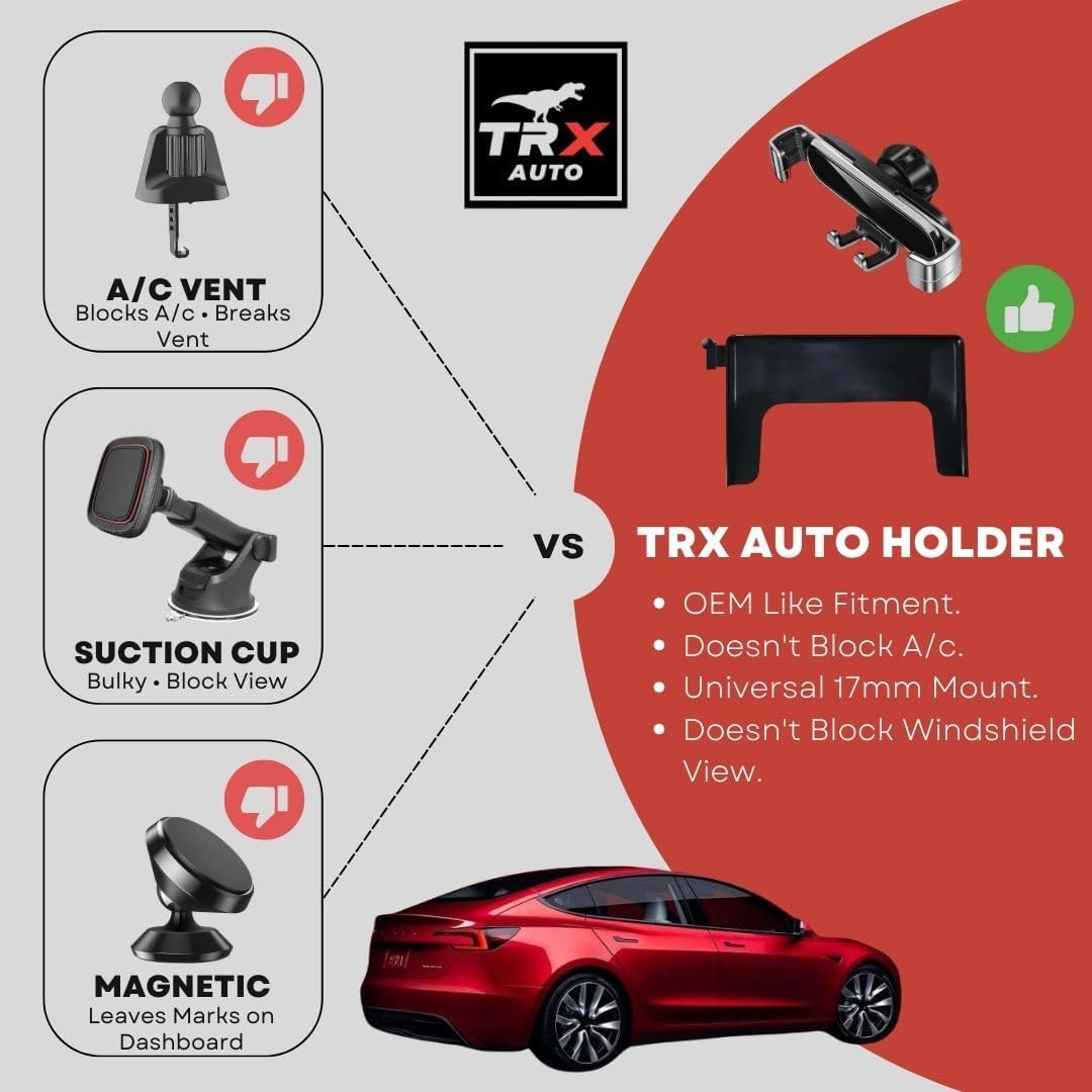 TRX AUTO Phone Holder Mount With Gravity Phone Holder For Tesla Model Y and Model 3 2018 To 2022 With 15.6 Inch Screen | Tesla Accessories | Tesla Model 3 Mobile Phone Holder